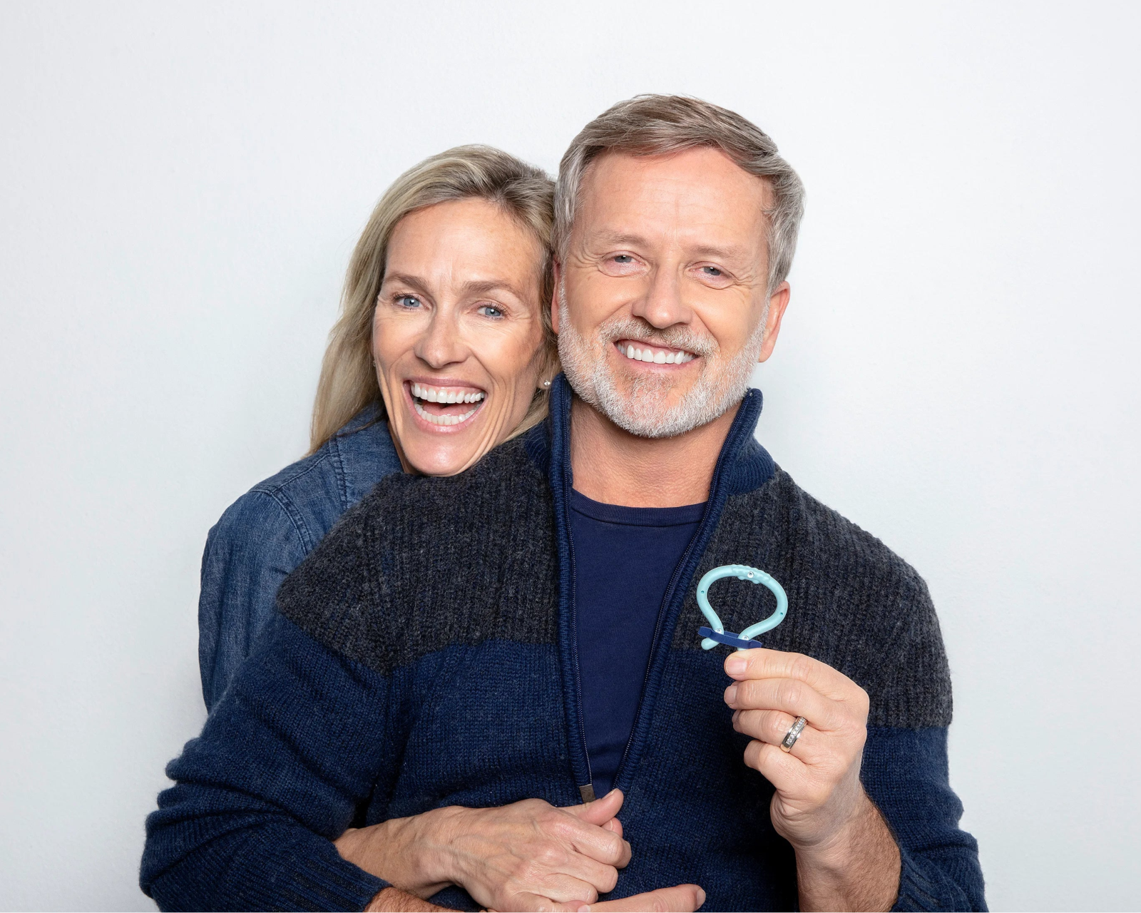 Select the tension band that provides you the best fit. Use the blue band for standard tension or the red band for a tighter fit.